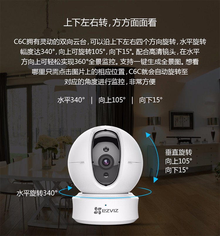 云臺角度水平0°-340°,垂直向上105°,向下15°